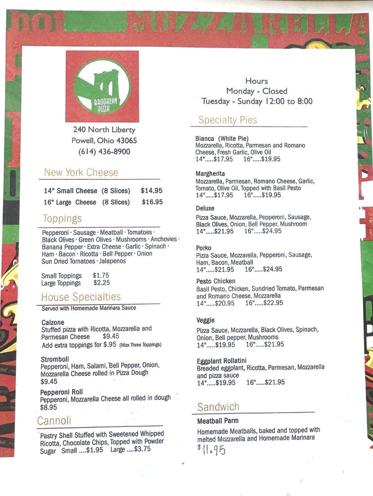 Brooklyn Pizza Powell Menu (Update 2025)